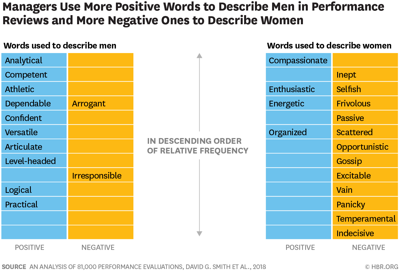 The words we use to describe leaders have real-life implications. In addition to telling us about what an organization does or does not value, they also influence how employees make decisions about their career path and their potential to advance. Gender bias is real, and women often receive both conflicting and more vague feedback, putting them at a competitive disadvantage when it comes to job opportunities, promotions, and recognition.