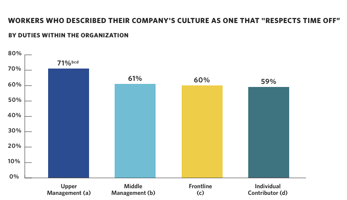 In many organizations, no matter the size or sector, there is a disconnect between leadership and employee perspectives on key issues like employee engagement and wellbeing. As leaders, it's important that we model what it means to "respect time off." That can include simply approving requests without unnecessary roadblocks, not contacting employees while they're out, and using our own time off.